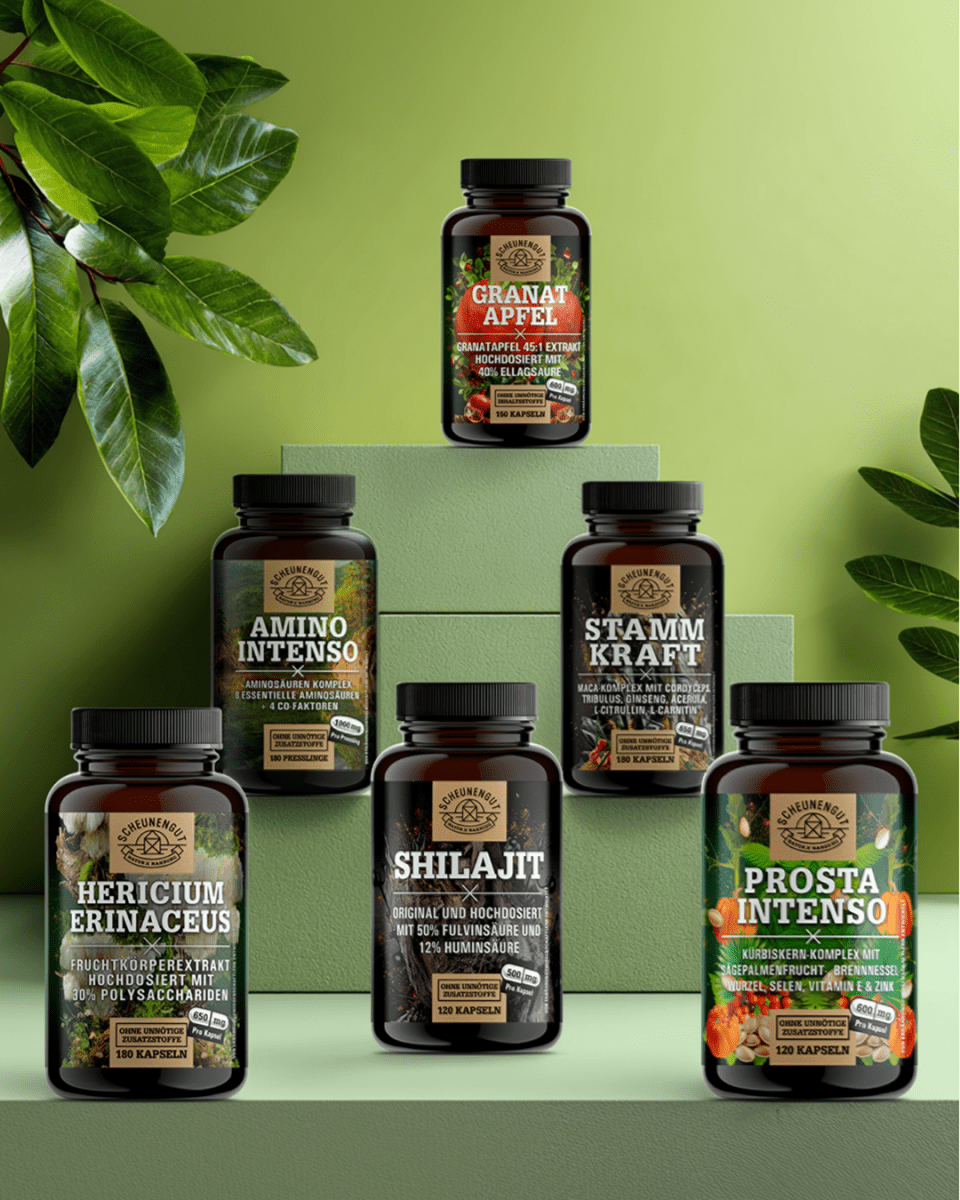 Spare jetzt im Black Month mit unserem Special-Paket – darin enthalten: Prosta Intenso für deine Vitalität, Granatapfel Extrakt als Antioxidantien-Booster, Stammkraft für neue Energie, Lions Mane für mentale Stärke, Shilajit (120 Kapseln) für Ausdauer und Amino Intenso für optimale Regeneration!