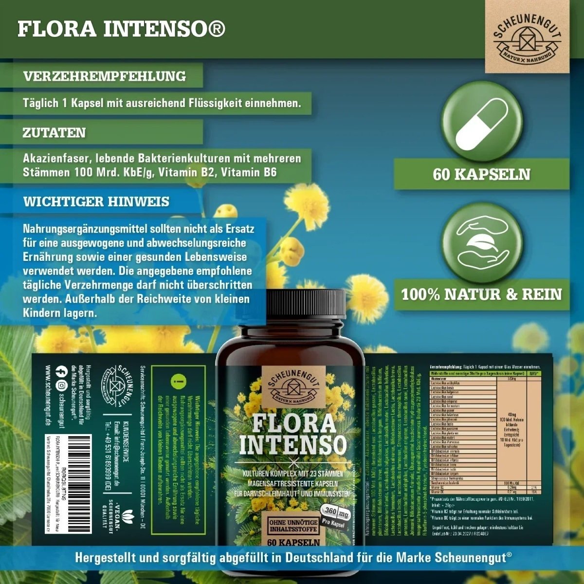 Jedoch existiert folgendes Problem: Die genaue Wirkung von pflanzlichen Inhaltsstoffen dürfen wir aus rechtlichen Gründen leider nicht kommunizieren, da Nahrungsergänzungsmittel per Gesetz als Lebensmittel klassifiziert sind.