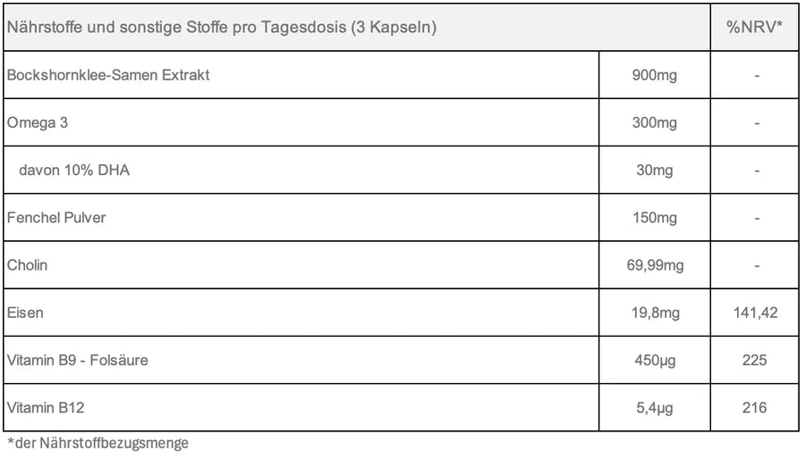 Wir raten von einer Einnahme während Schwangerschaft und Stillzeit ab, da keine ausreichenden Studien, die die Sicherheit von den Inhaltsstoffen während der Schwangerschaft untersucht haben, vorliegen.