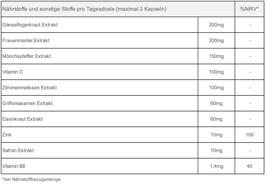 Wir raten von einer Einnahme während Schwangerschaft und Stillzeit ab, da keine ausreichenden Studien, die die Sicherheit von den Inhaltsstoffen während der Schwangerschaft untersucht haben, vorliegen.