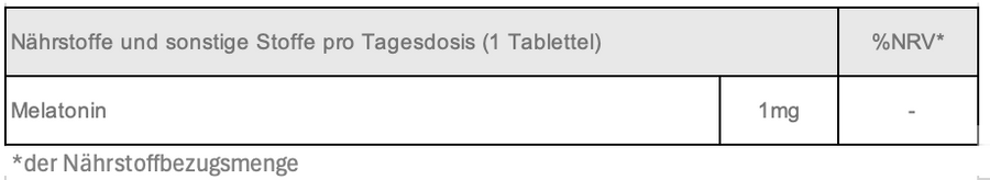 Füllstoff: Mikrokristalline Cellulose, Melatonin (1mg pro Tablette), Hydroxypropylmethylcellulose